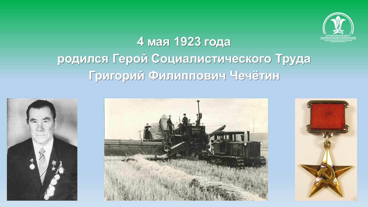 Указом Президиума Верховного Совета СССР от 9 марта 1948 года за получение высокого урожая пшеницы при выполнении колхозом обязательных поставок и натуроплаты за работу МТС в 1947 году и обеспеченности семенами зерновых культур для весеннего сева 1948 года Чечётину Григорию Филипповичу присвоено звание Героя Социалистического Труда с вручением ордена Ленина и золотой медали «Серп и Молот».