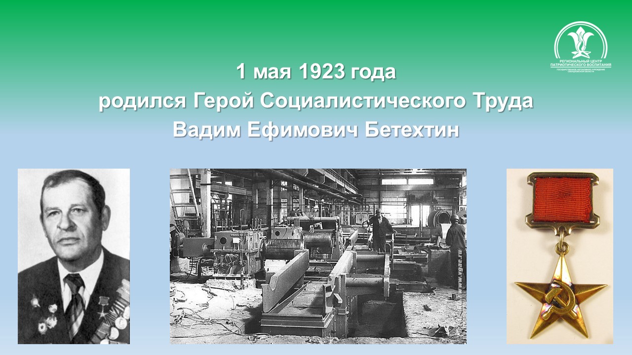 Бетехтин Вадим Ефимович – прессовщик Ревдинского завода по обработке цветных металлов Министерства цветной металлургии СССР, Свердловская область.
