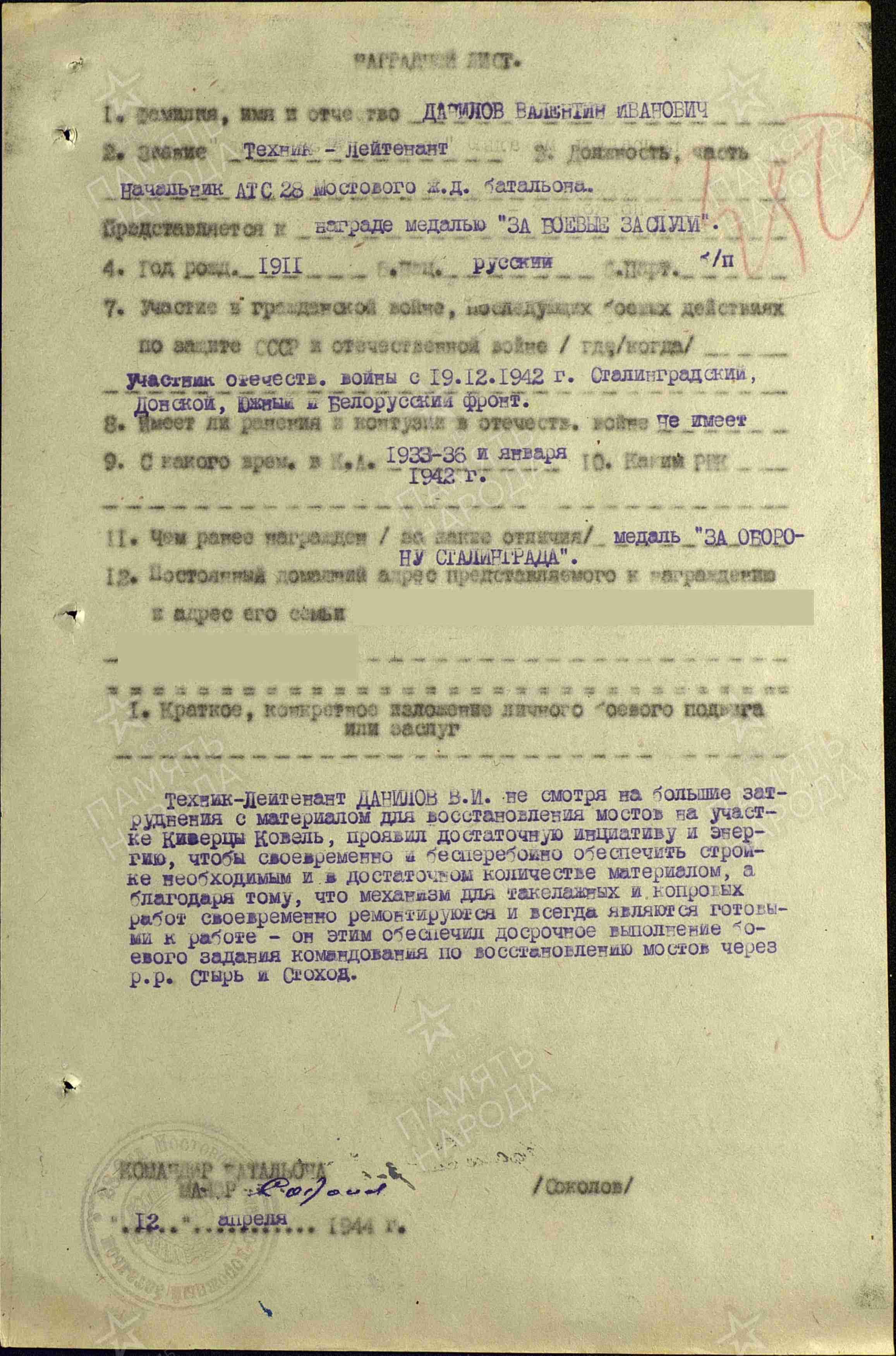 Участник Великой Отечественной войны.