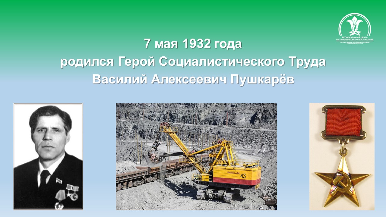 Пушкарёв Василий Алексеевич – машинист крана управления механизации треста «Качканаррудстрой», Свердловская область.