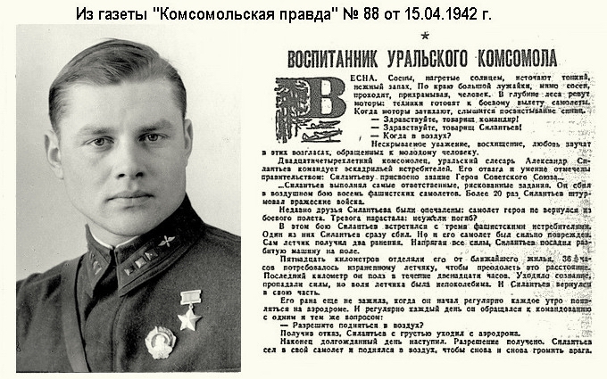 В семье Силантьевых большая радость. Сыну-летчику Александру Петровичу за образцовое выполнение боевых заданий командования на фронте борьбы с немецкими захватчиками и проявленные при этом отвагу и геройство присвоено звание Героя Советского Союза с вручением ордена Ленина и медали! «Золотая звезда».