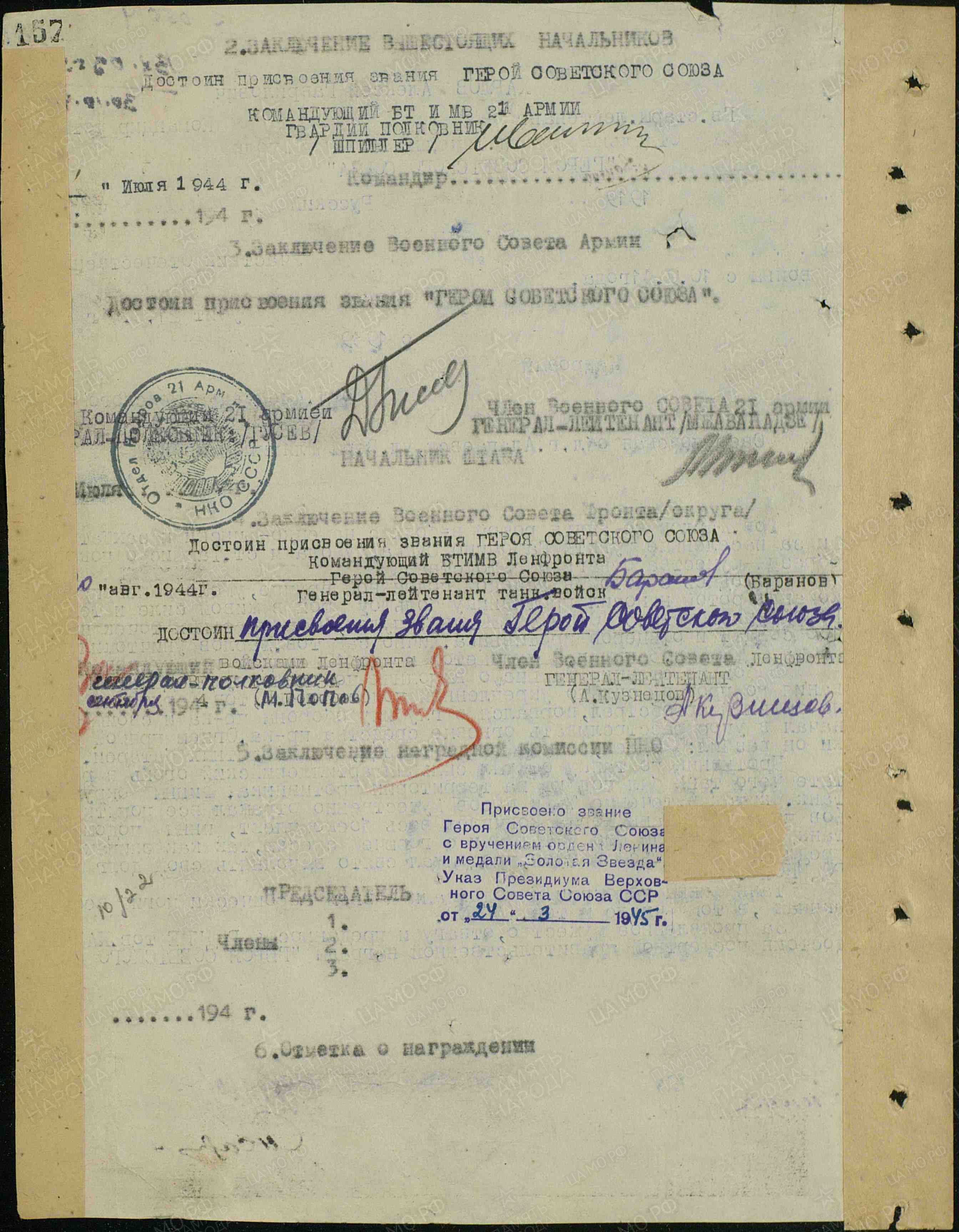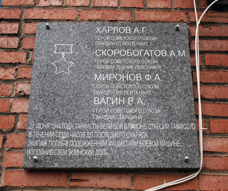 20 июня в борьбе за станцию Таммисуо рота старшего лейтенанта Харлова должна была прорвать укреплённую полосу обороны противника. Несмотря на сильный артиллерийский обстрел, командирский танк пробился вперёд. Оказавшись в глубине вражеской обороны, экипаж начал в упор расстреливать огневые точки. Уже было разбито пять пушек, четыре пулемётных гнезда и три миномётные батареи. Ловко маневрируя тяжёлой машиной, механик-водитель Скоробогатов подмял под гусеницы две противотанковые пушки, миномёт. Но остальные орудия, находившиеся на этом участке, открыли огонь по вырвавшемуся вперёд советскому танку. Машина оказалась подбитой. Враги бросились к ней, надеясь тут же захватить танк. Но танк превратился в крепость- гарнизон. «Гарнизон» четырёх гвардейцев.