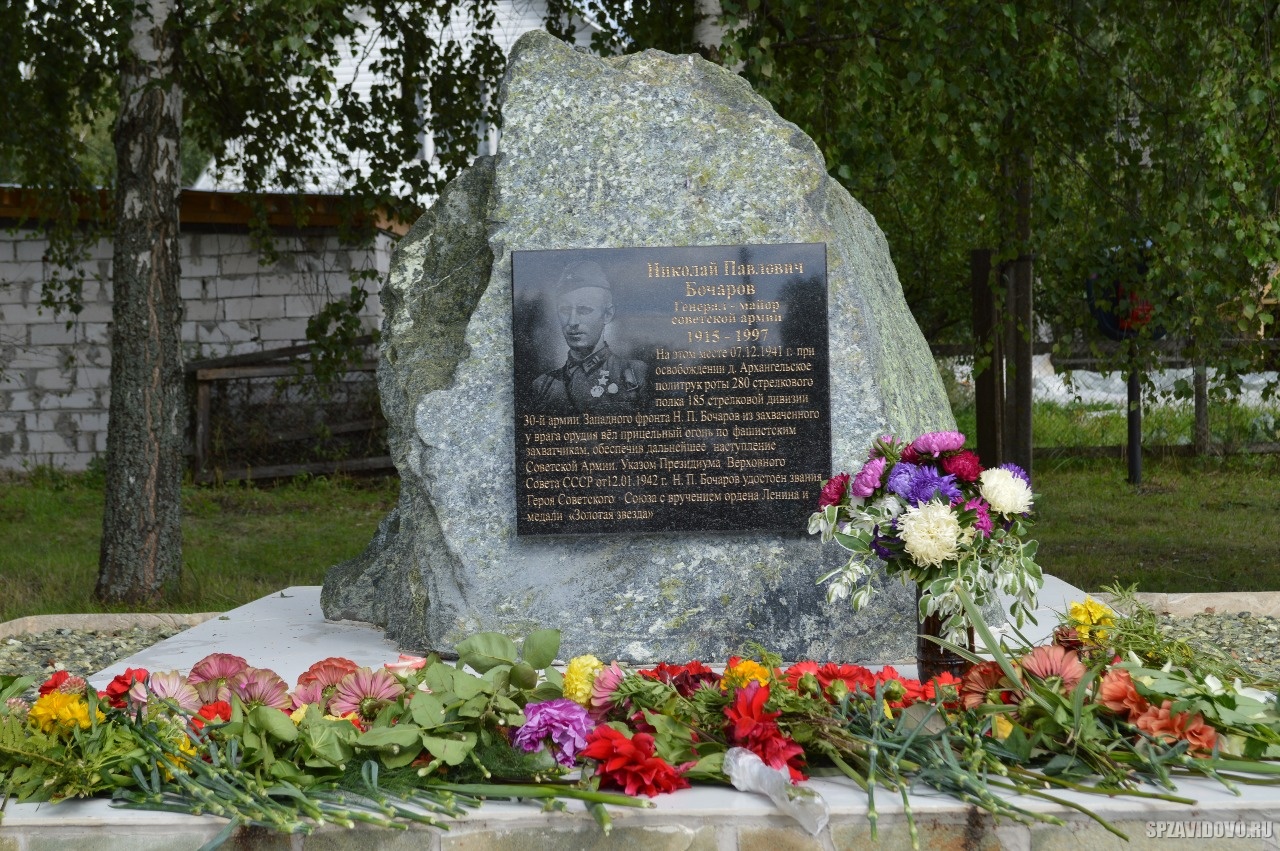 На фронтах Великой Отечественной войны — с июня 1941 года. 7 декабря 1941 года политрук Н.П. Бочаров у села Архангельское (Конаковский район, Калининская область), рискуя жизнью, разминировал поле и в образовавшийся прорыв повёл роту в атаку. В бою было захвачено 2 орудия. Бочаров развернул одно из них и открыл огонь по врагу, сделав около 100 выстрелов.