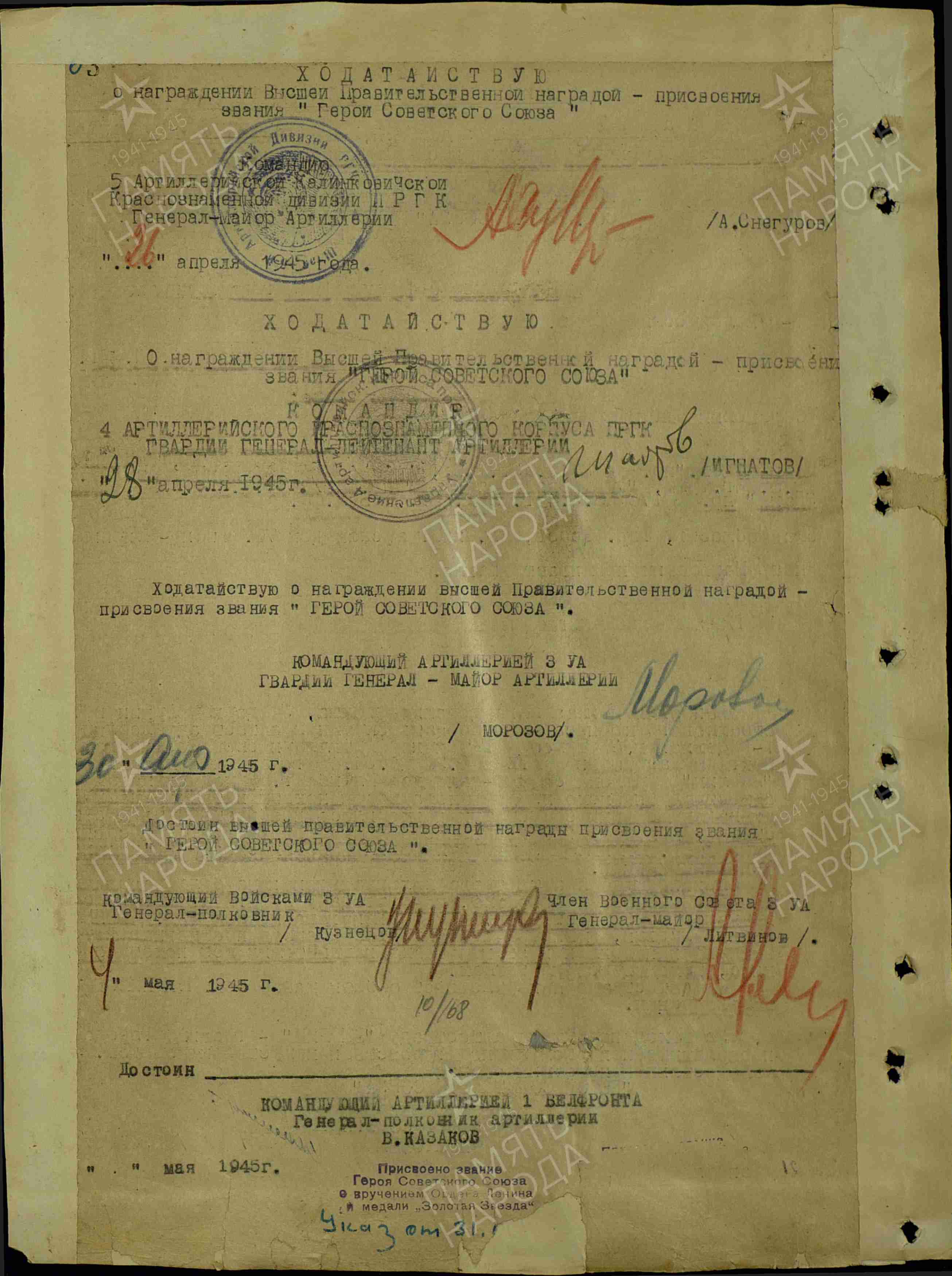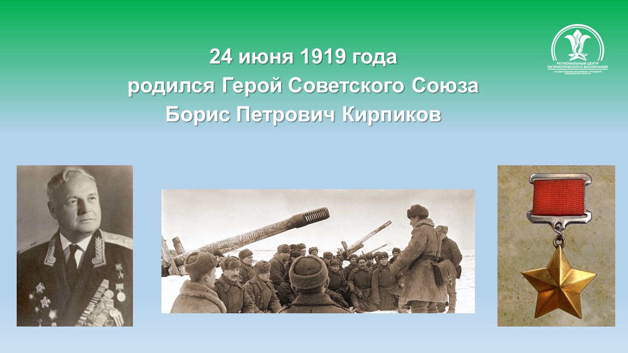 Кирпиков Борис Петрович – командир дивизиона 86-й тяжёлой гаубичной артиллерийской бригады разрушения 5-й артиллерийской дивизии 4-го артиллерийского корпуса прорыва 3-й ударной армии 1-го Белорусского фронта, майор.