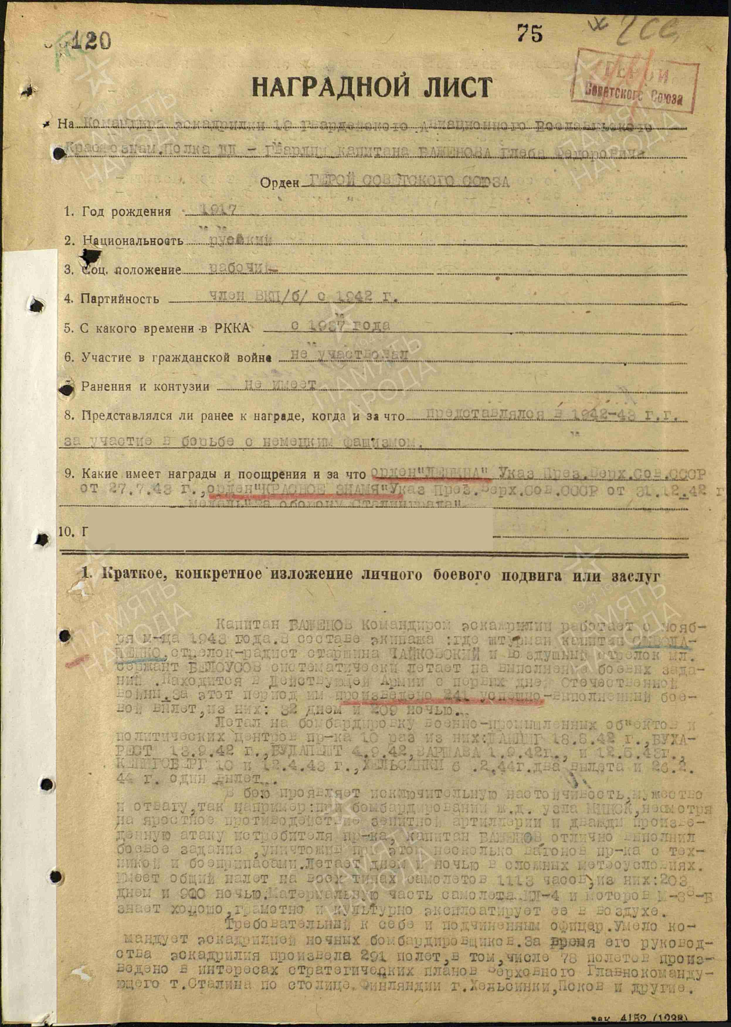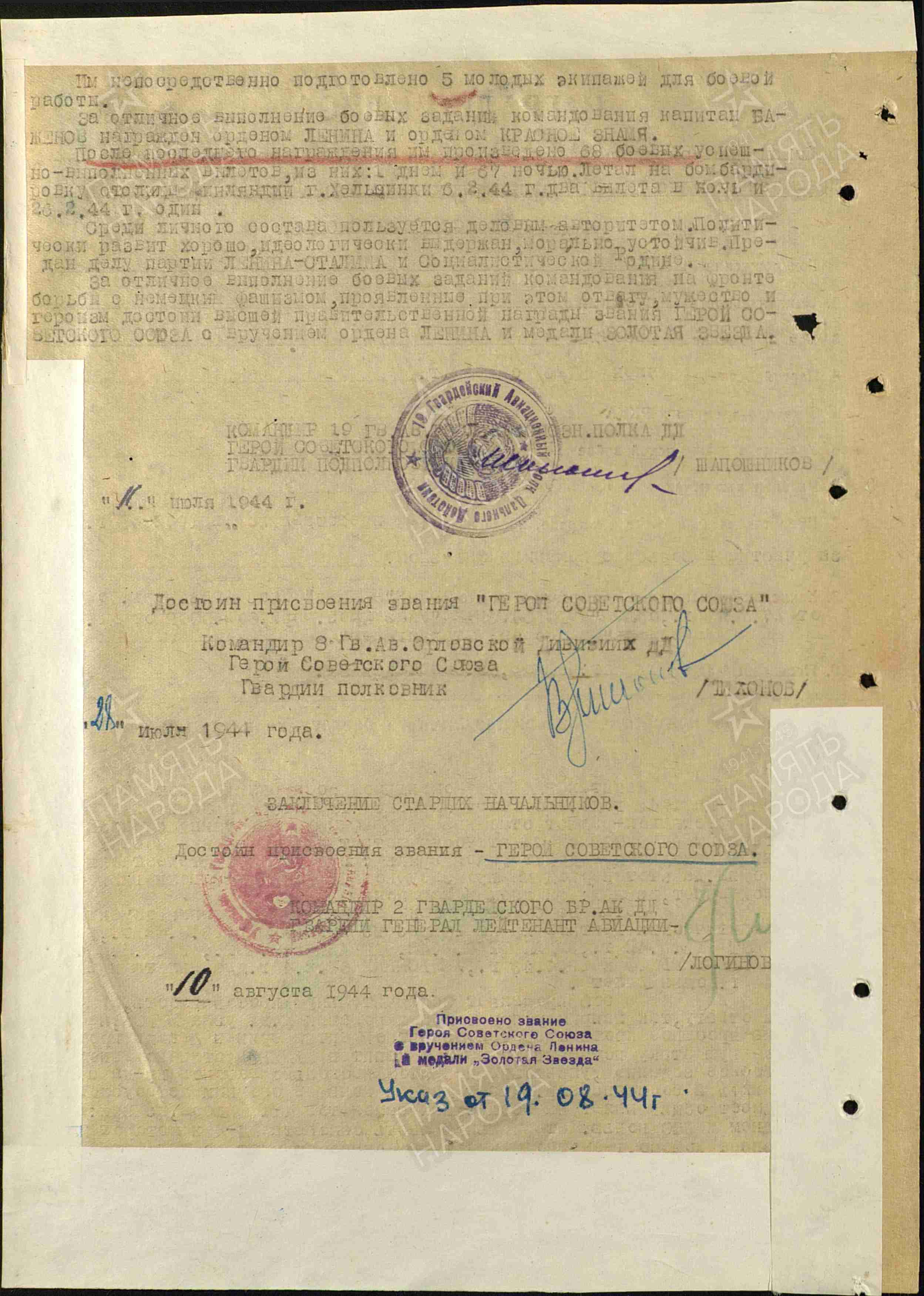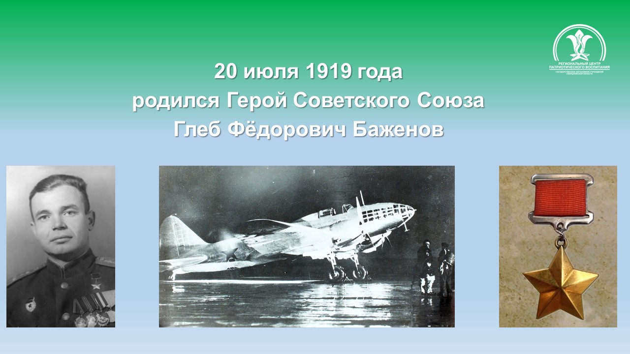 Баженов Глеб Фёдорович – командир авиаэскадрильи 19-го гвардейского авиационного полка дальнего действия (8-я гвардейская авиационная дивизия дальнего действия, 2-й гвардейский авиационный корпус дальнего действия, Авиации дальнего действия), гвардии капитан.