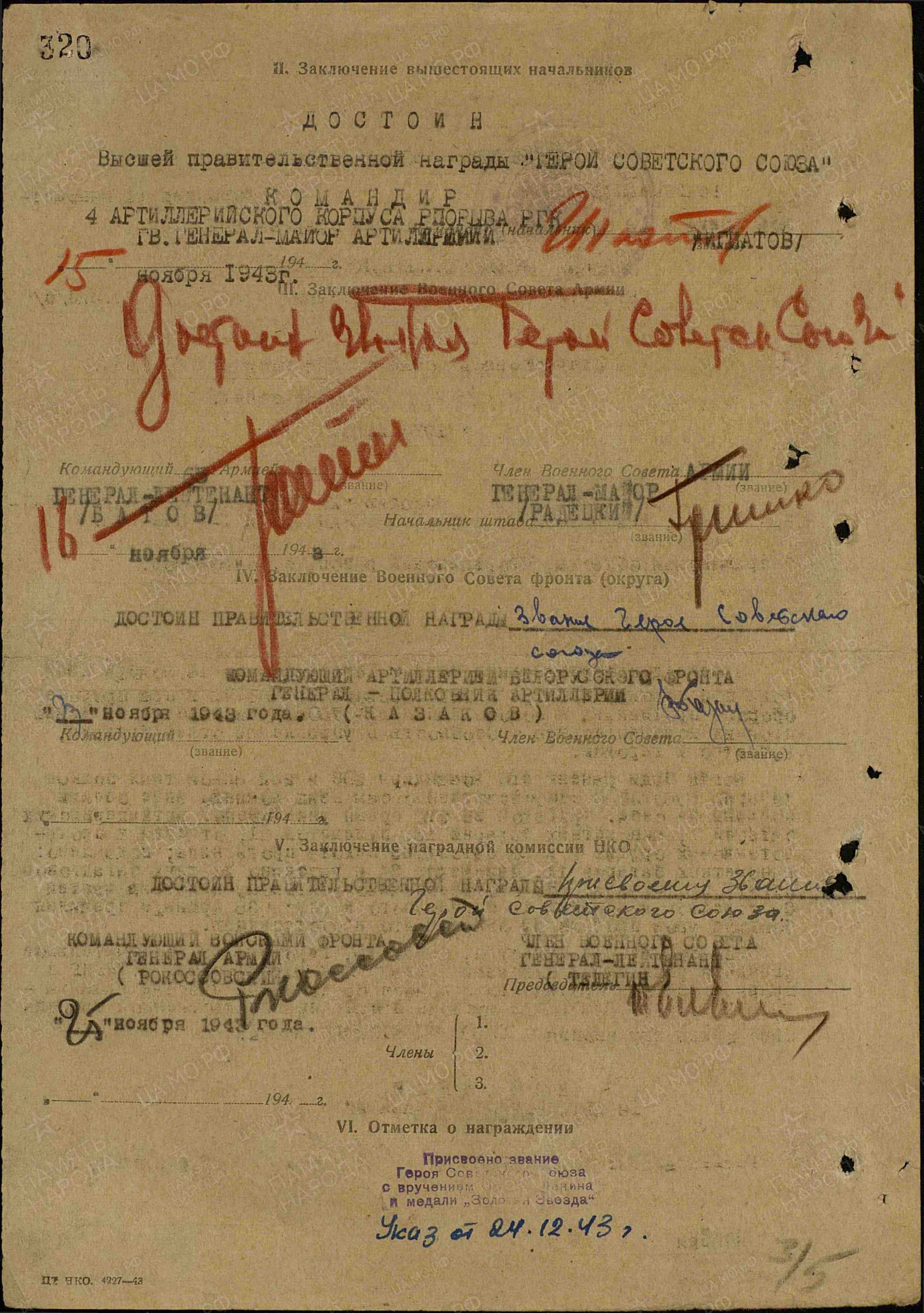 второй - ноябрь 1944 года - за образцовое выполнение боевых заданий командования на фронте борьбы с немецкими захватчиками и проявленные при этом доблесть и мужество;