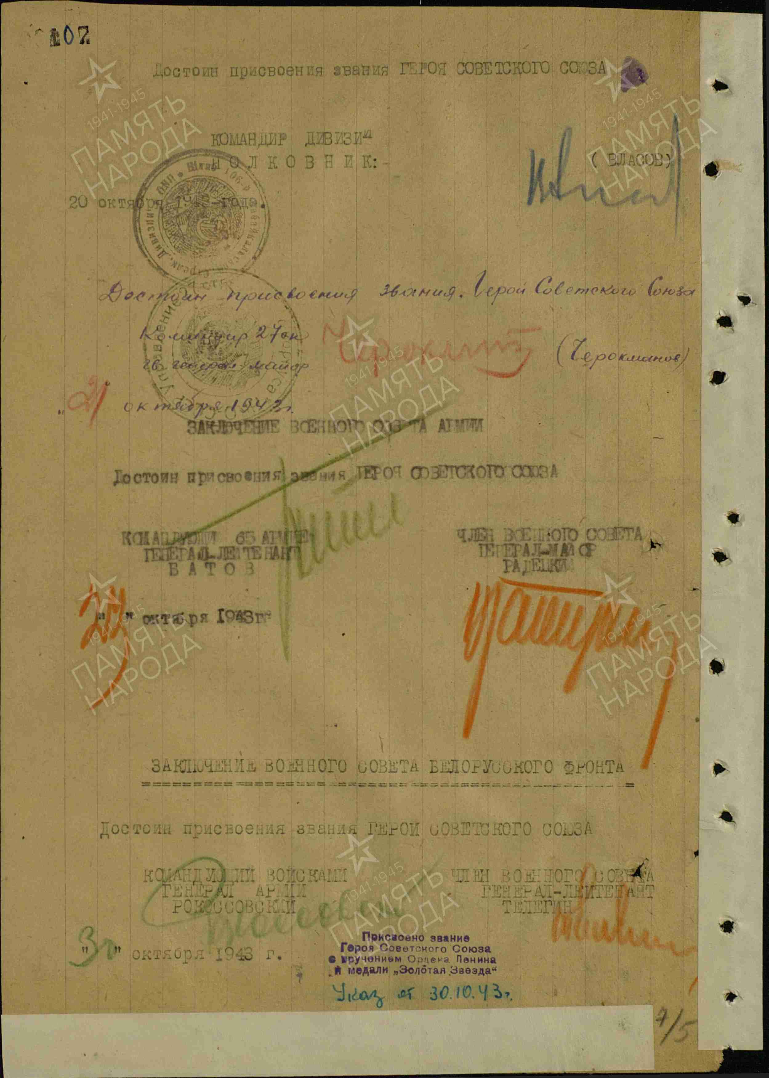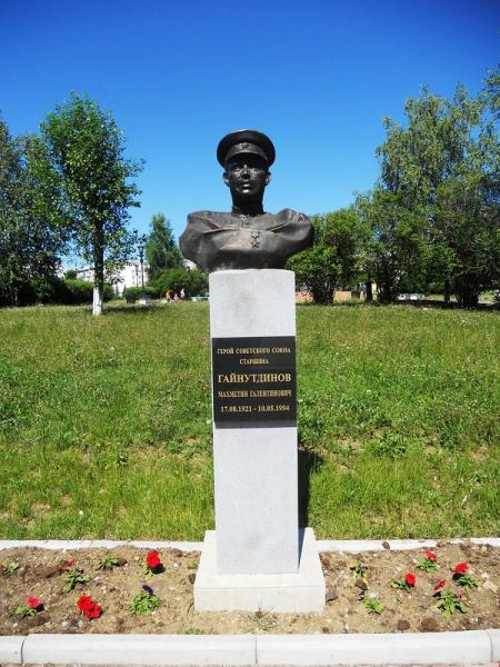 Командир взвода роты связи 43-го стрелкового полка (106-я стрелковая дивизия, 65-я армия, Центральный фронт) старшина Махметин Гайнутдинов 15 октября 1943 года при форсировании реки Днепр в районе посёлка городского типа Лоев Лоевского района Гомельской области Белоруссии под огнём неприятеля проложил через реку телефонный кабель, чем обеспечил связь штаба 43-го стрелкового полка с ротами.