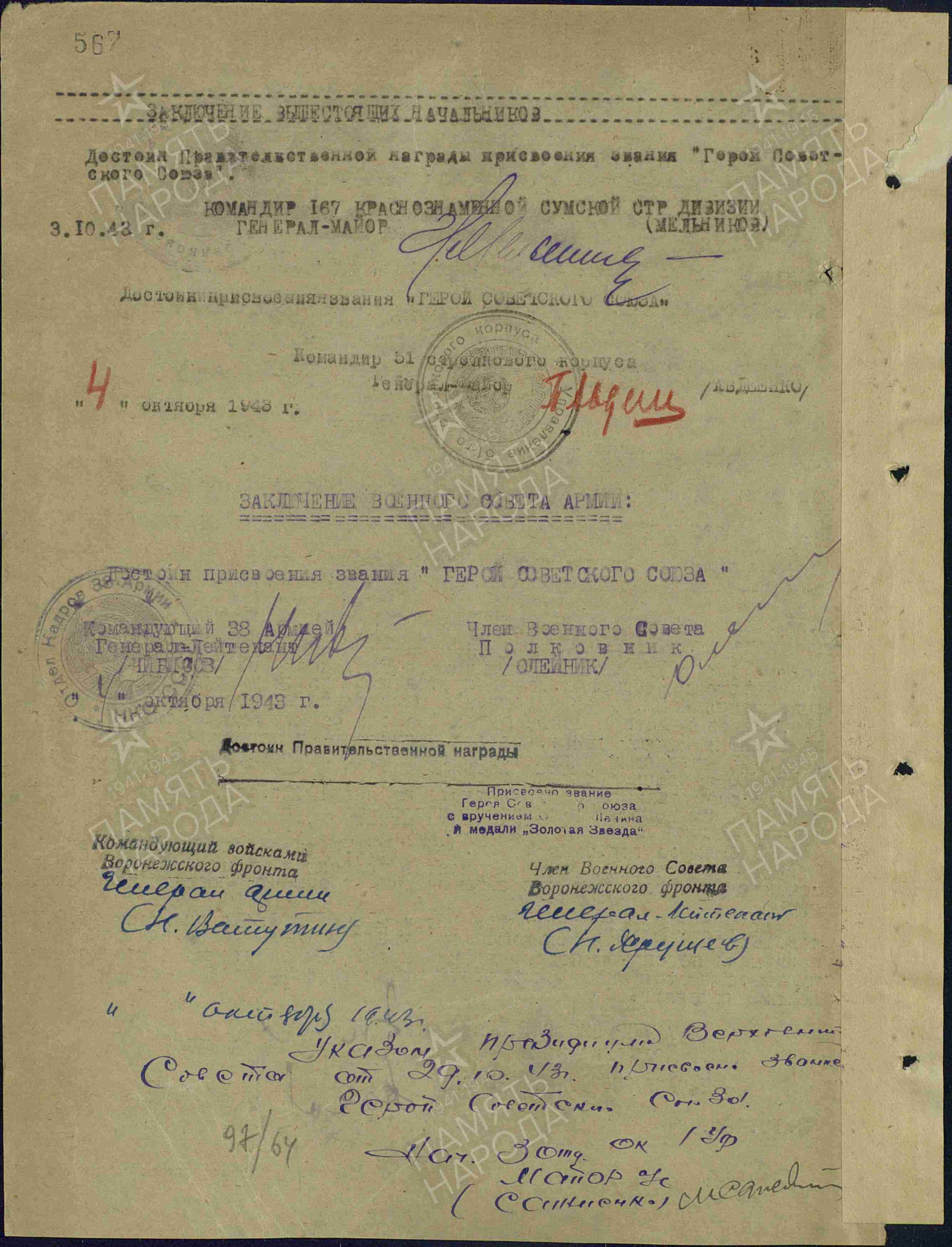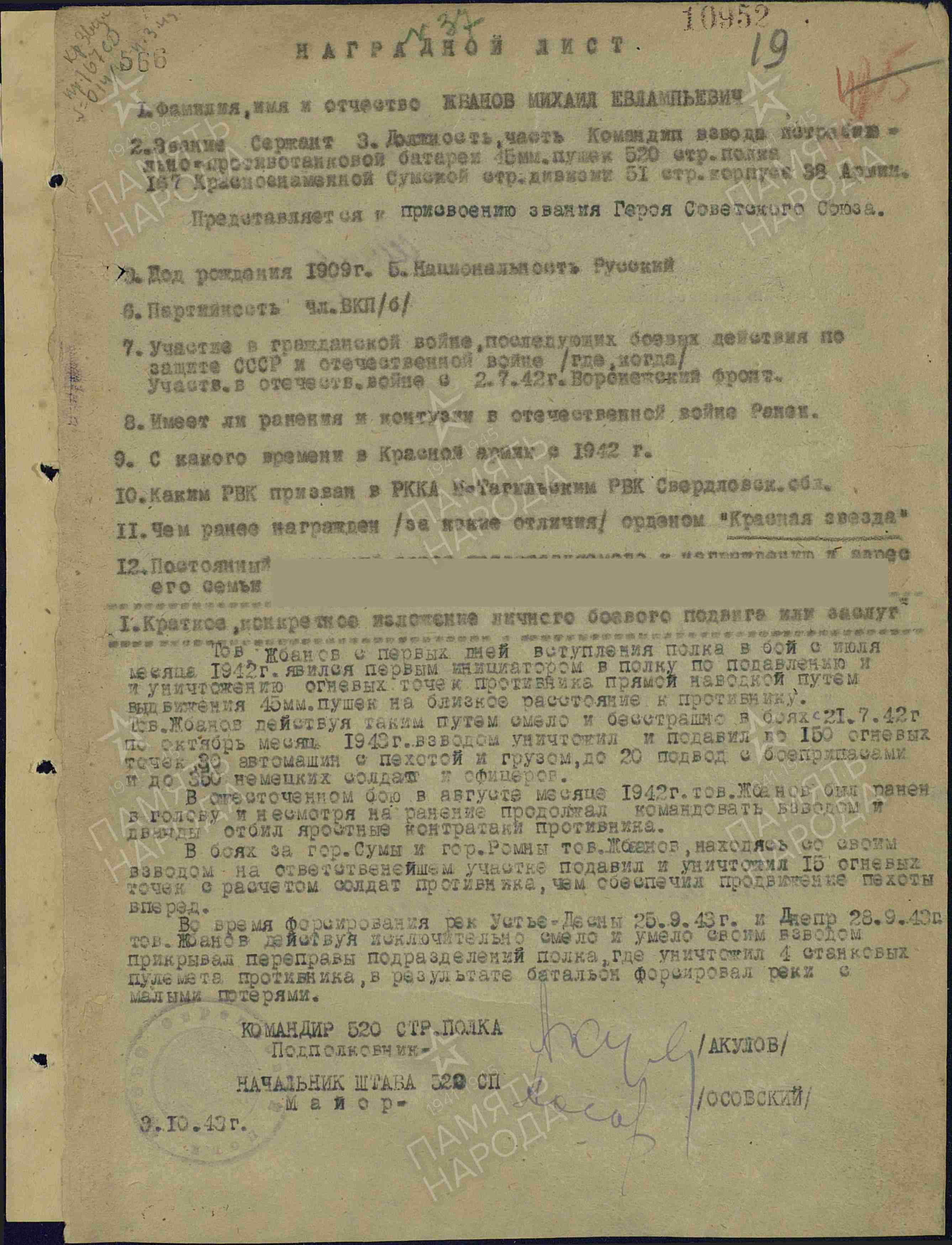 Жбанов Михаил Евлампиевич - командир взвода истребительно-противотанковой батареи 520-го стрелкового полка (167-я стрелковая дивизия, 38-я армия, Воронежский фронт), сержант.