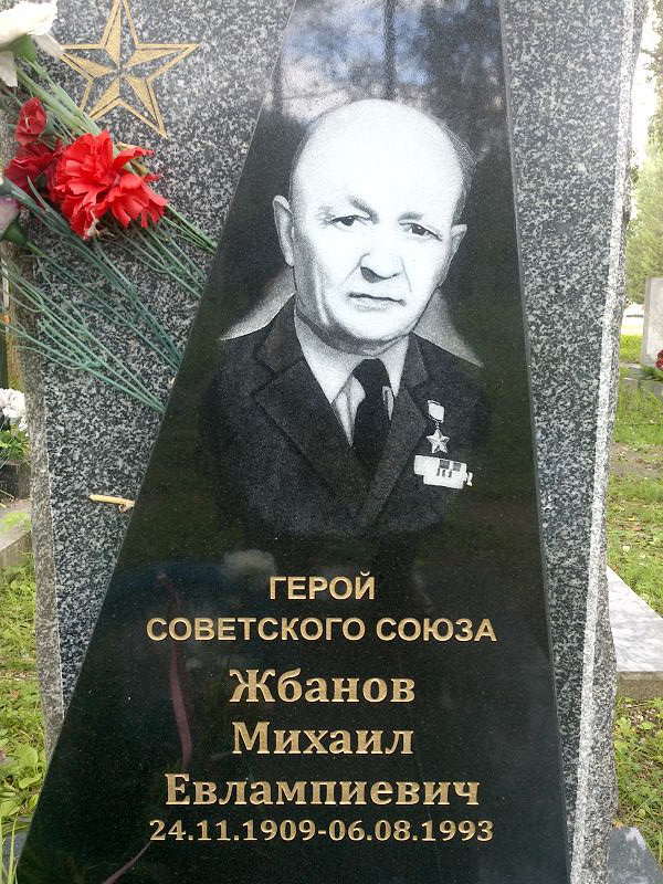 Сержант Жбанов Михаил Евлампиевич удостоен звания Героя Советского Союза с вручением ордена Ленина и медали «Золотая Звезда». Награждён орденами Ленина, Отечественной войны 1-й степени, Красной Звезды. После войны жил и работал в Нижнем Тагиле».