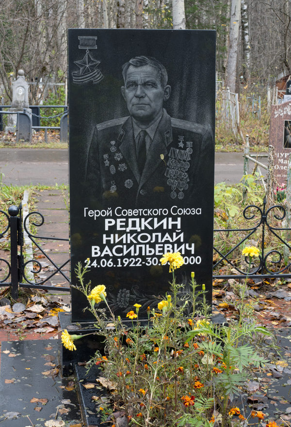 4 октября при отражении очередной контратаки Н.В. Редкин лично заменил погибший расчет, вытащил пулемет на открытую позицию и открыл огонь в упор по наступающим цепям. Уничтожил до 20 гитлеровцев.