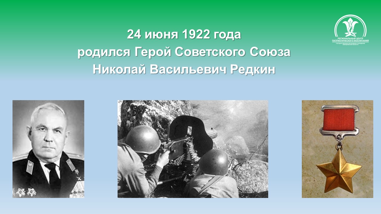 Указом Президиума Верховного Совета СССР 13 ноября 1943 года за мужество и героизм, проявленные при форсировании Днепра и удержании плацдарма, лейтенанту Редкину Николаю Васильевичу присвоено звание Героя Советского Союза с вручением ордена Ленина и медали «Золотая Звезда» (№ 2251).