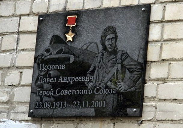 3 апреля 1944 года командир 163-го истребительного авиационного полка (336-я истребительная авиационная дивизия, 6-я воздушная армия, 1-й Белорусский фронт) подполковник П.А. Пологов в воздушном бою на подступах к городу Ковелю таранным ударом своего горящего истребителя Як-9 сбил вражеский транспортный самолёт Ju-52. Приземлился на парашюте.