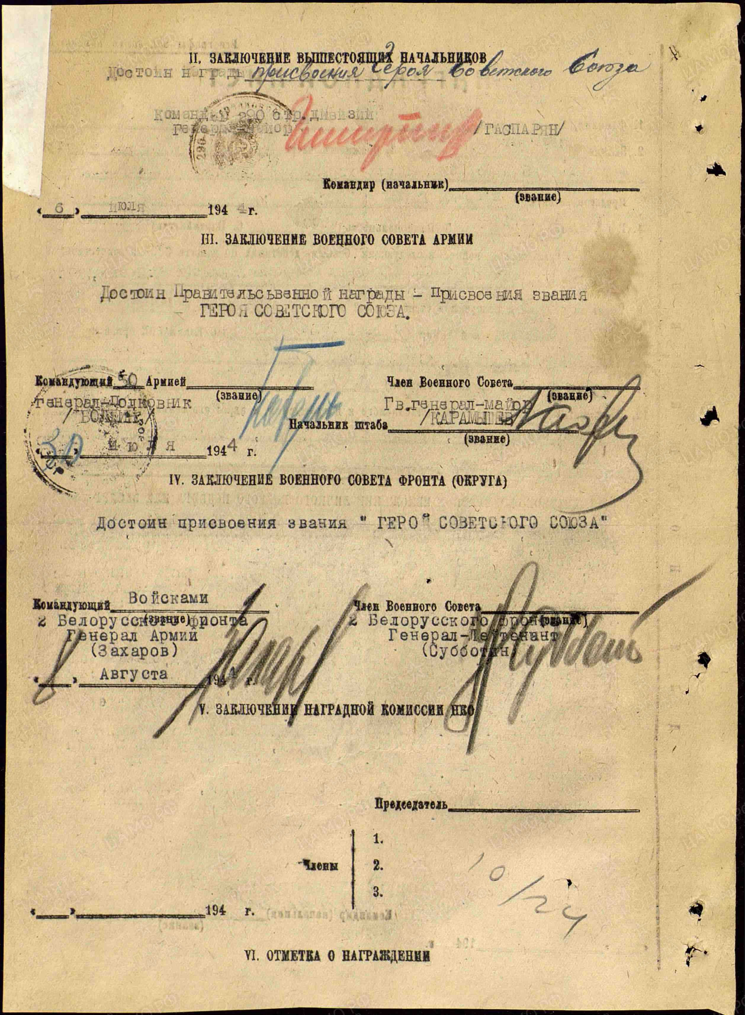 Особо отличился в ходе Могилевской наступательной операции на территории Белоруссии.