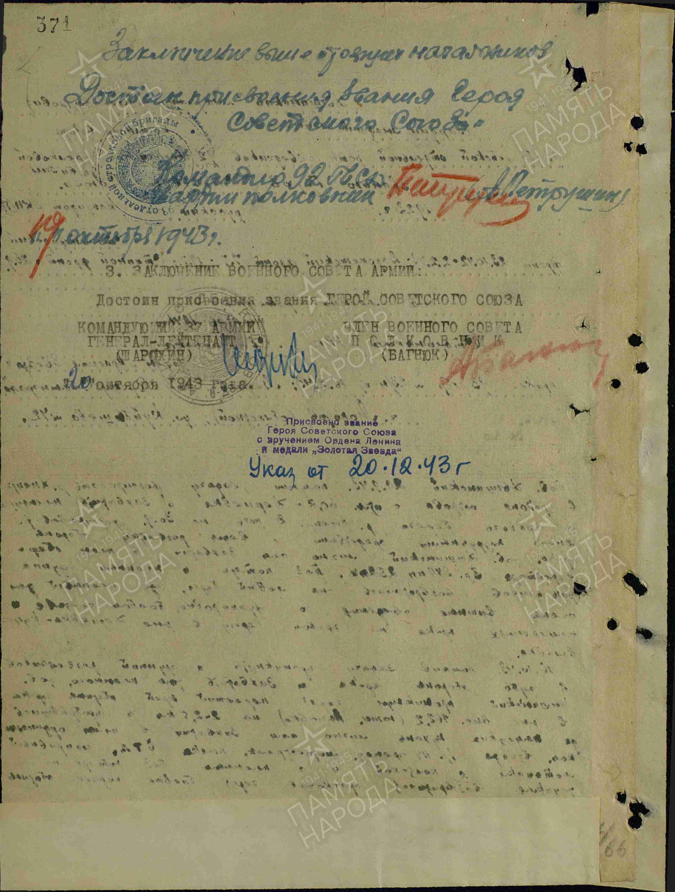 За образцовое выполнение заданий командования, умелое руководство и личную отвагу младший лейтенант В.А. Дышинский был представлен к званию Героя Советского Союза.