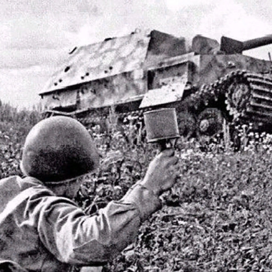 Однако танки приближались. Вот «тигр» направился прямо на окоп сержанта. Одну за другой Евлашов метнул бутылки с горючей смесью. И тотчас по броне заметались языки пламени…. Но схватка не окончилась. Стальная громада проползла над головой Евлашова, обвалив края окопа. Сержант снова поднялся во весь рост, размахнулся и бросил вдогонку связку гранат. С воем пронеслись осколки. Иван увидел, как из развороченной кормы «тигра» вырвались клубы дыма, одна гусеница была сорвана, и танк закружился на месте.
