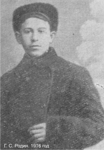 В годы Первой мировой войны с июля 1916 г. Г.С. Родин проходил службу в составе 32-го запасного полка Московского ВО в г. Владимир. В ноябре того же года направлен на Западный фронт, где воевал в составе 219-го Котельнического полка 55-й пехотной дивизии в районе Барановичи, командир взвода, старший унтер-офицер (Учебное заведение императорской армии в архивных документах и личном деле не указано).