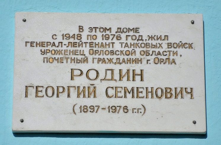 Генерал-лейтенант танковых войск Георгий Семёнович Родин в июле 1946 г. вышел в запас. Умер 6 января 1976 г. в Орле.