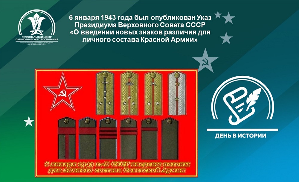 6 января 1943 года был опубликован Указ Президиума Верховного Совета СССР «О введении новых знаков различия для личного состава Красной Армии»